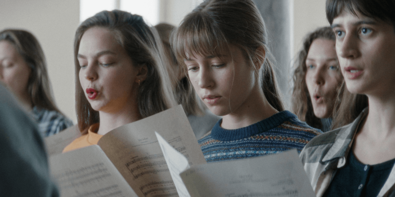 L’étincelle initiale du projet remonte à 2018, lorsque j’ai assisté à un concert d’une chorale slovène composée de jeunes filles. Dès que je les ai entendues chanter, j’ai été bouleversée. J’ai été profondément émue par la puissance de leurs voix, à la frontière de l’éveil de leur féminité, au point de devoir retenir mes émotions pour ne pas fondre en larmes au beau milieu du concert. Il y avait quelque chose d’ important dans la force de ces voix féminines adolescentes, si souvent réduites au silence au fil de l’histoire. Trois prêtres étaient également dans le public, tout aussi émus que moi. Cette scène m’a paru étrange : des hommes adultes vivant dans le célibat, écoutant des jeunes filles irradier une énergie sexuelle en éveil. Cela m’a semblé significatif, et j’ai ressenti le besoin d’explorer ce thème et ma propre réaction émotionnelle à travers un longmétrage. J’ai commencé par observer cette chorale et étudier sa dynamique, ce qui a inspiré mon premier scénario. Plus tard, nous avons formé notre propre chorale pour continuer le travail.